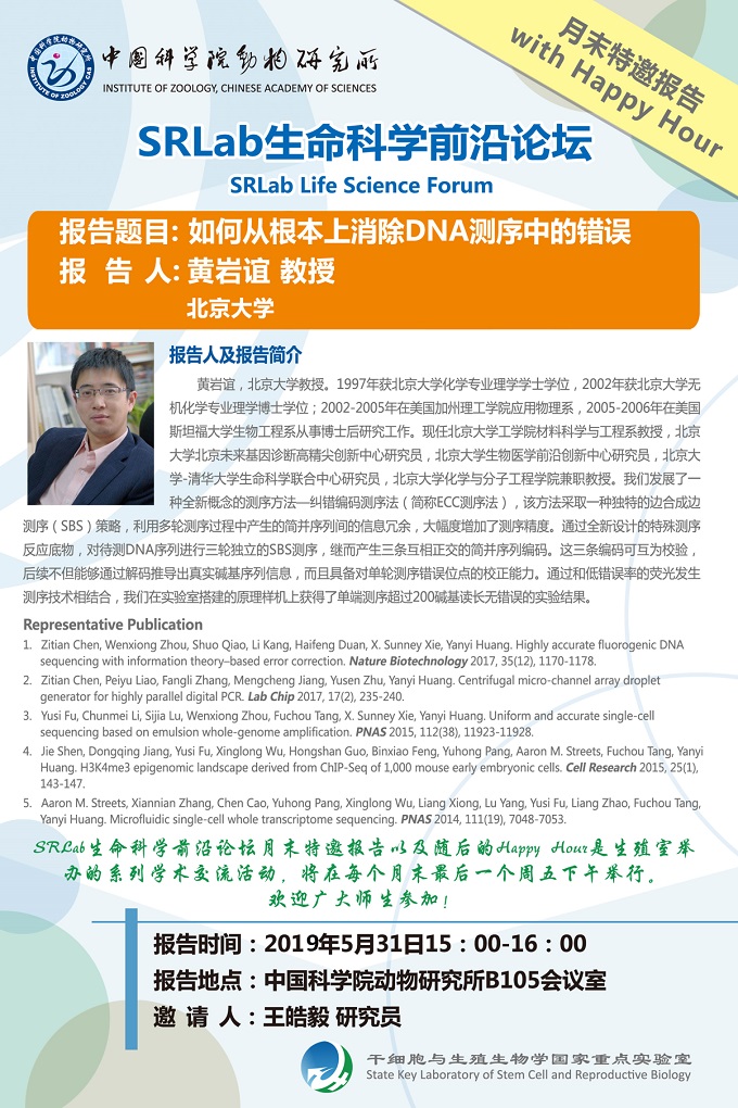 SRLab生命科學前沿論壇/月末特邀報告:如何從根本上消除DNA測序中的錯誤