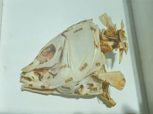 秉誌先生製作的魚頭骨標本。 倪思潔攝