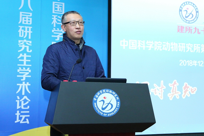 在12月5日的開幕式上,周琪所長首先致辭。他向出席今天開幕式的嘉賓、專家學者和青年朋友們表示了誠摯的感謝和熱烈的歡迎,他表示,近年來,隨著國家經濟發展和科技進步,研究生科研水平與時俱進;在做好科研工作的同時,研究生還應關注如何樹立正確的價值觀、人生觀和科學觀;他強調,科學技術的本真是解決科學問題,解決國家麵臨的實際困難與挑戰,科學技術應服務於國家建設和重大需求;希望同學們在探討前沿科學的同時,建立正確的學術思想、學術道德和學術判斷,不忘人文關懷與科學倫理,做一名有學問、有品德、有情懷、有眼界的動物所人。最後,他預祝本次論壇成功舉辦,祝願青年學子們都能取得豐碩的科研成果。