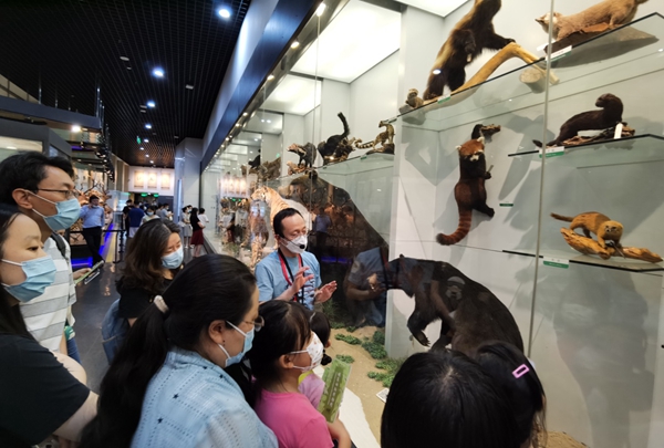 在今年的“科學之夜”中,為了能夠更好地向公眾傳播有關動物的科學知識,由國家動物博物館科普講師、動物所研究生組成了“臨時科普宣講團”,他們在十個展廳內進行講解,向公眾們介紹了有關“中國瀕危野生動物保護”、“中國鳥類多樣性”、“中國昆蟲分類與生態”、“國門生物安全”等專業知識。在他們的講述中,枯燥的數字和平日裏大家難以接觸到的理論也變得鮮活、生動起來。