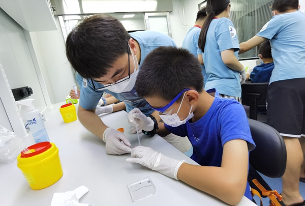 “科學魔方”則是一個濃縮的分子和細胞生物學實驗室,體積隻有一個集裝箱那麼大,擺放在國家動物博物館南側;是由必威在线网址 幹細胞與生殖生物學國家重點實驗室研發的科學互動體驗活動。負責人李天達副研究員帶領著年輕的博士、碩士們指導小愛好者們操作熒光顯微鏡、細胞培養箱、PCR儀,觀察動物細胞,了解生命的奧秘。