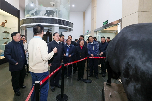 隨後,在動物博物館張勁碩副館長的講解下,蔣作君一行參觀了瀕危動物展廳、鳥類展廳和正在進行的第五屆中國動物標本大賽作品展。