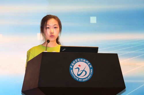 2015級碩士王冉同學代表新生發言。她首先向各位老師表達了教師節的祝賀,並同在場新生一起回顧了經過艱苦奮鬥、終於實現夢想走進動物所的心路曆程。她動情地將導師比喻成科研道路上的指明燈,將研究所比喻成承載學生跨越茫茫大海的渡輪。她提出,研究生的學習更加需要自主性和專業性,號召大家以最大的努力去追尋夢想,在以後更為激烈的競爭中乘風破浪,打造更加輝煌燦爛的明天!