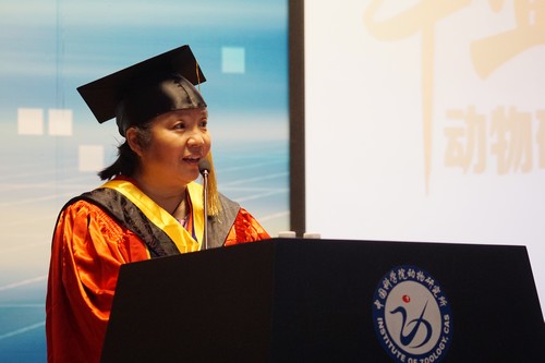 畢業典禮在莊嚴的國歌聲中拉開序幕。康樂所長為畢業生們致辭,他首先祝賀畢業生順利完成學業,感謝導師們為培養研究生付出的辛勤汗水。對即將踏入社會的畢業生們,康樂所長殷切囑托:第一,在這個信息大爆炸的時代,要不斷的學習,爭取做時代的引領者。第二、在這個國際化的時代裏,要有國際性的眼光來定位自己今後的工作。第三、在這個多元化的時代裏,要懂得如何堅守自己的夢想。他說:“未來的時代是屬於你們的,要勇於挑戰自己、勇於創新、勇於嚐試才能更好的觸碰未來。不管你們今後奔赴何方,請記住動物所是你們家,是你們堅強的後盾,你們是動物所永遠的牽掛。祝願你們在未來的日子裏取得更大的成功!”